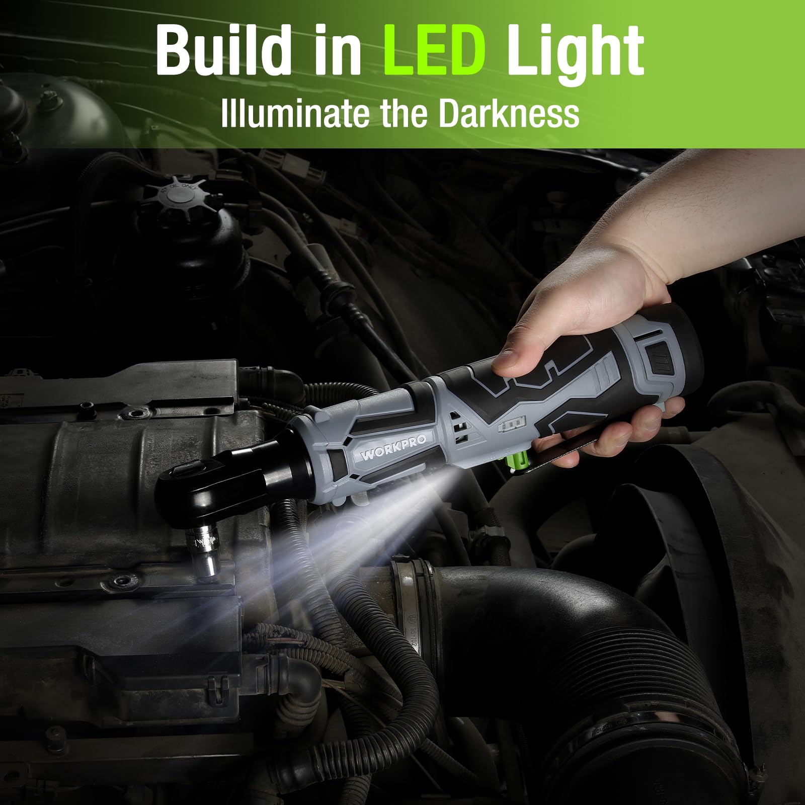 - 2 Batteries & Fast charge: WORKPRO power ratchet wrench kit is equipped with two 2000mAh rechargeable lithium batteries. The battery can fully charge in 1 hour. Powerful endurance can provide a strong guarantee for your heavy workload