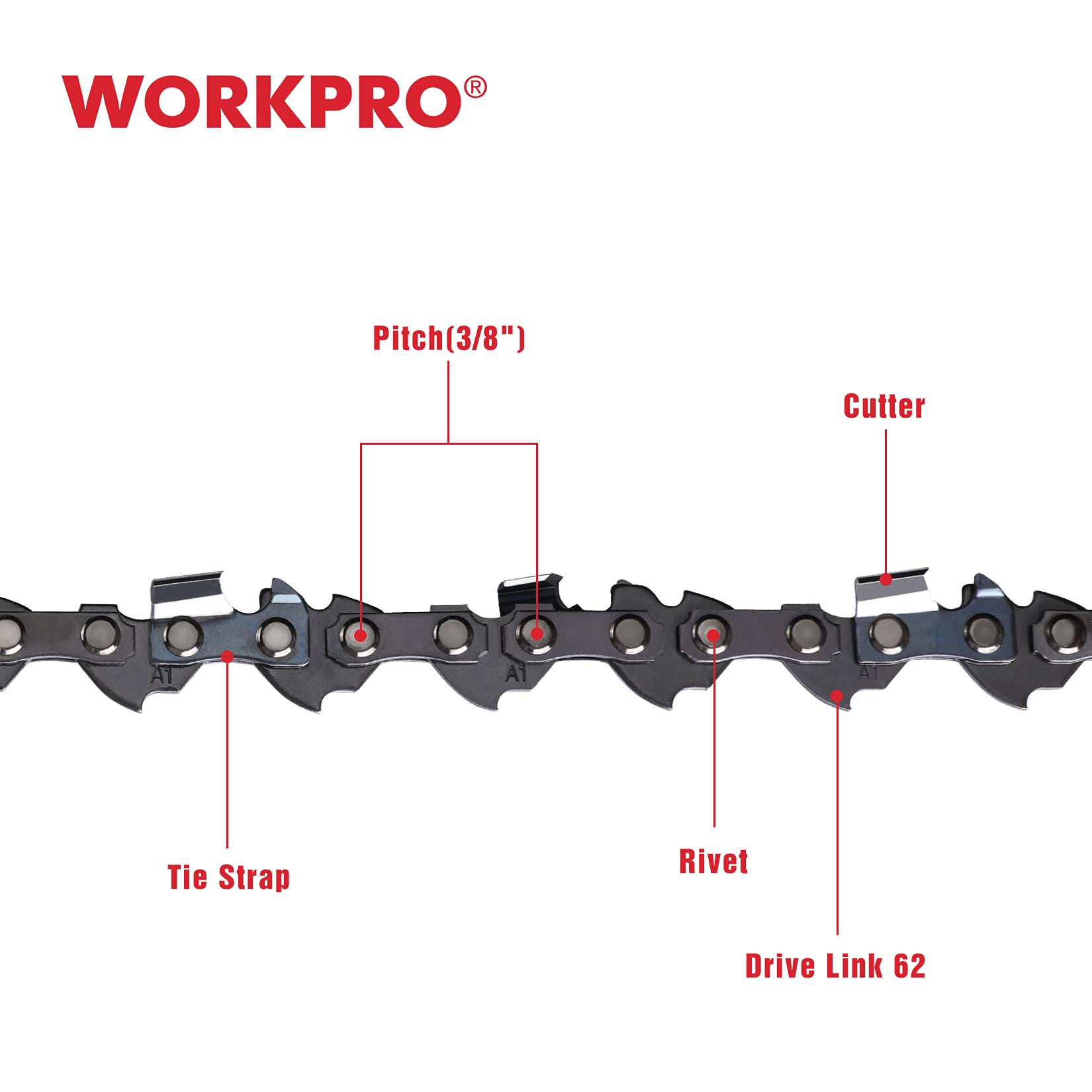WORKPRO 2-Pack 18 Inch Chainsaw Chain, 3/8"Pitch, 62 Drive Links Wood Cutting Saw Chain for Chainsaw Parts fits Craftsman, Poulan, Echo, DeWalt