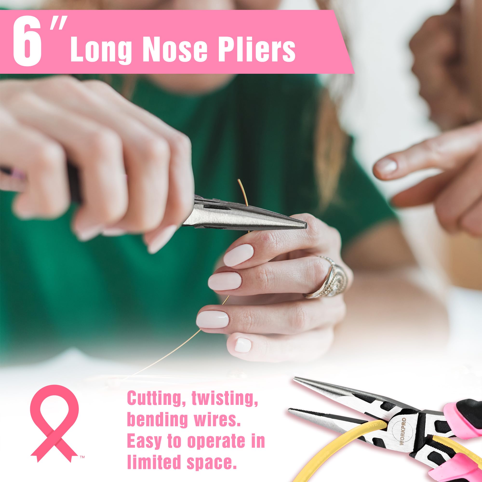 WORKPRO 3-Piece Pliers Set, Pink Tool Set Including Needle Nose & Diagonal Cutting & Slip Joint Pliers for Plumbing, Automotive and General Applications - Pink Ribbon