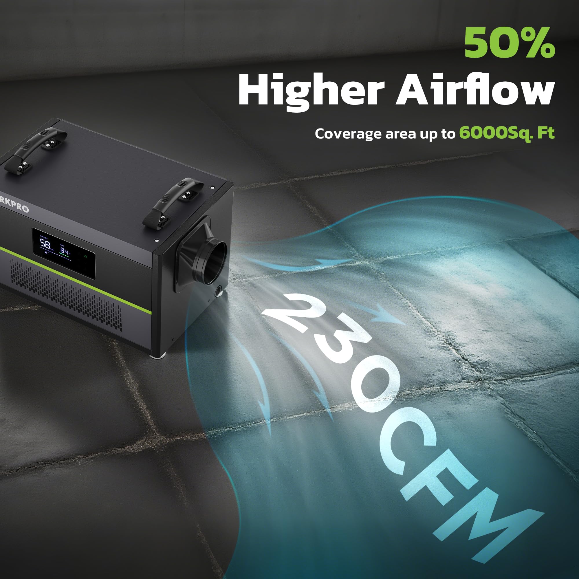 - 145 PPD Commercial Dehumidifier: This commercial dehumidifier removes up to 145 pints of moisture per day under extreme conditions (90°F, 90% RH), or 70 pints/day under AHAM standards. Ideal for basements, crawl spaces, garages, and warehouses up to 6000sq ft. It helps protect stored items from excess humidity and maintains a dry, comfortable environment