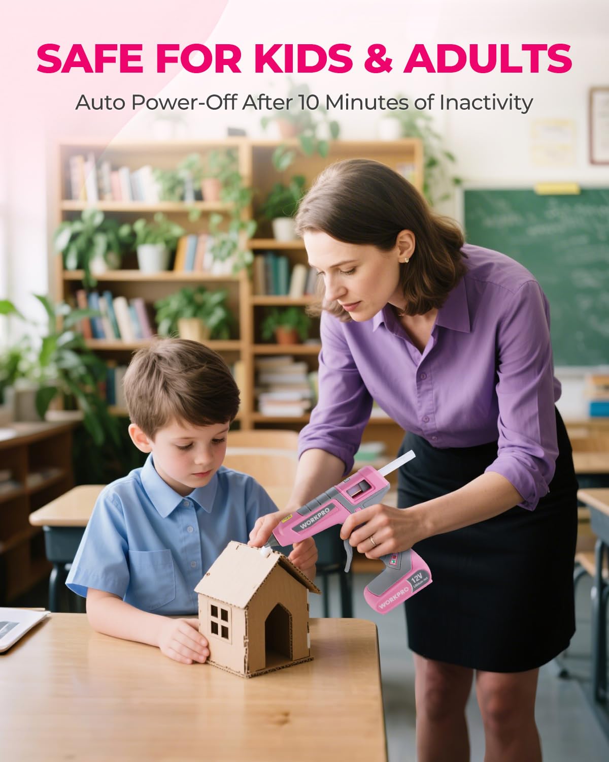 WORKPRO Full Size Cordless Hot Melt Glue Gun - 12V Rechargeable Fast Preheating Glue Gun Kit with 15pcs Full Size Glue Sticks, Auto Power-off Glue Gun for DIY Project, Art, Craft - Pink Ribbon