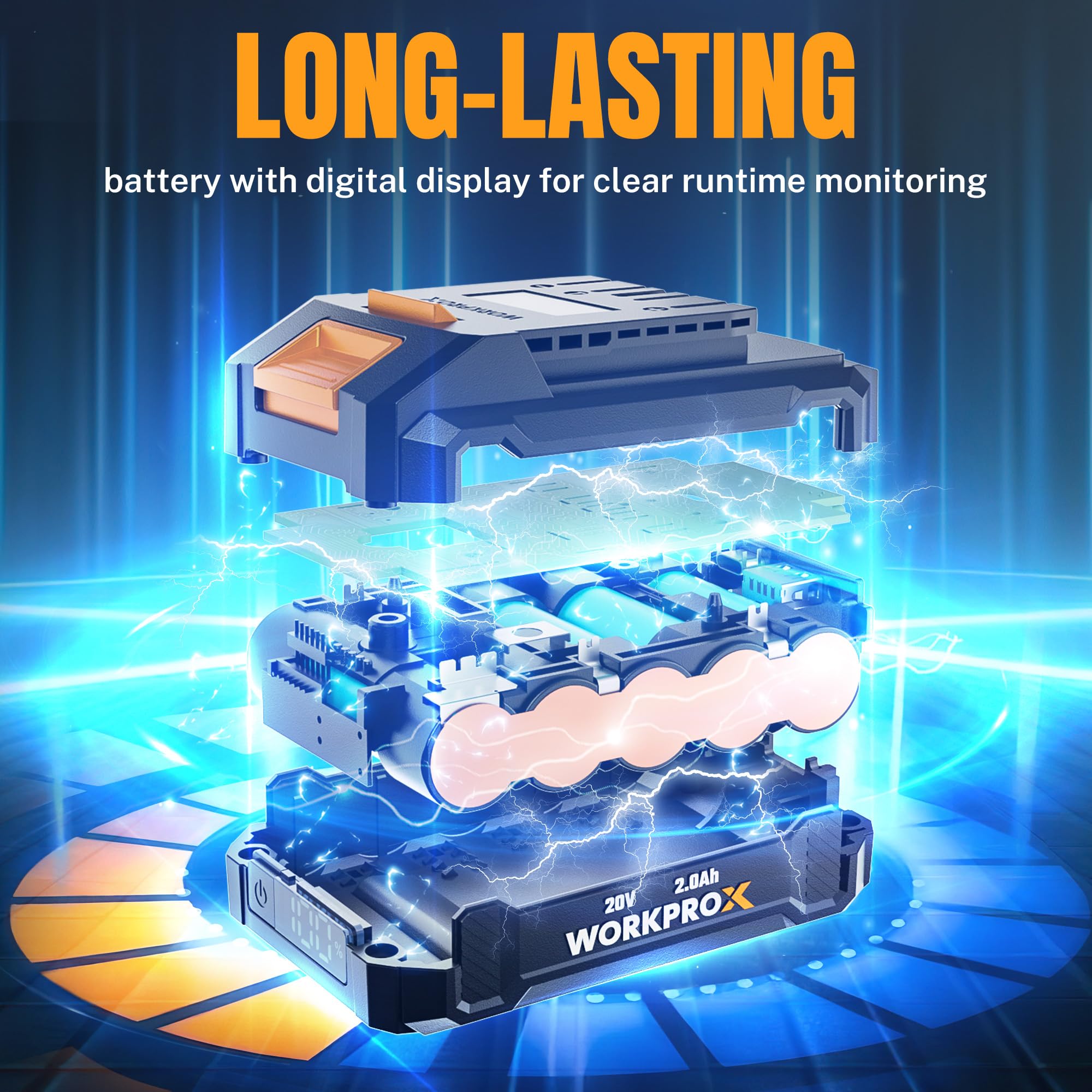 - Powerful Performance: The 2.0Ah battery delivers impressive power to the WORKPROX 20V cordless hedge trimmer, providing up to 40 minutes of grass cutting or 45 minutes of hedge trimming on a single charge. This battery also powers various WORKPROX 20V power tools and can double as a portable power bank. Check battery level at a glance with the integrated display. (Tip: We recommend using a 30W charger for an ultra-fast 1.5-hour recharge. Note: A charging adapter is not included.)